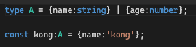 이때는 에러가난다. 자바스크립트 객체를 타입으로 상용할 수 없기때문이다.