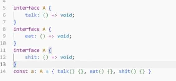 interface는 여러번 선언할 수 있는데, 선언할때마다 합쳐진다고 생각하면된다.