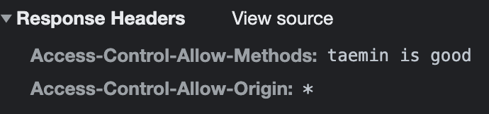 그렇기 때문에, 서버와 클라이언트가 서로다른 도메인에있다면 자원을 제공하는 측인 서버가 자신의 자원에 접근할 수 있도록 허용해주어야 한다.