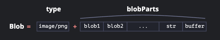 blob 은 MIME-type +blob or string or bufferSource 로 구성되어있습니다.